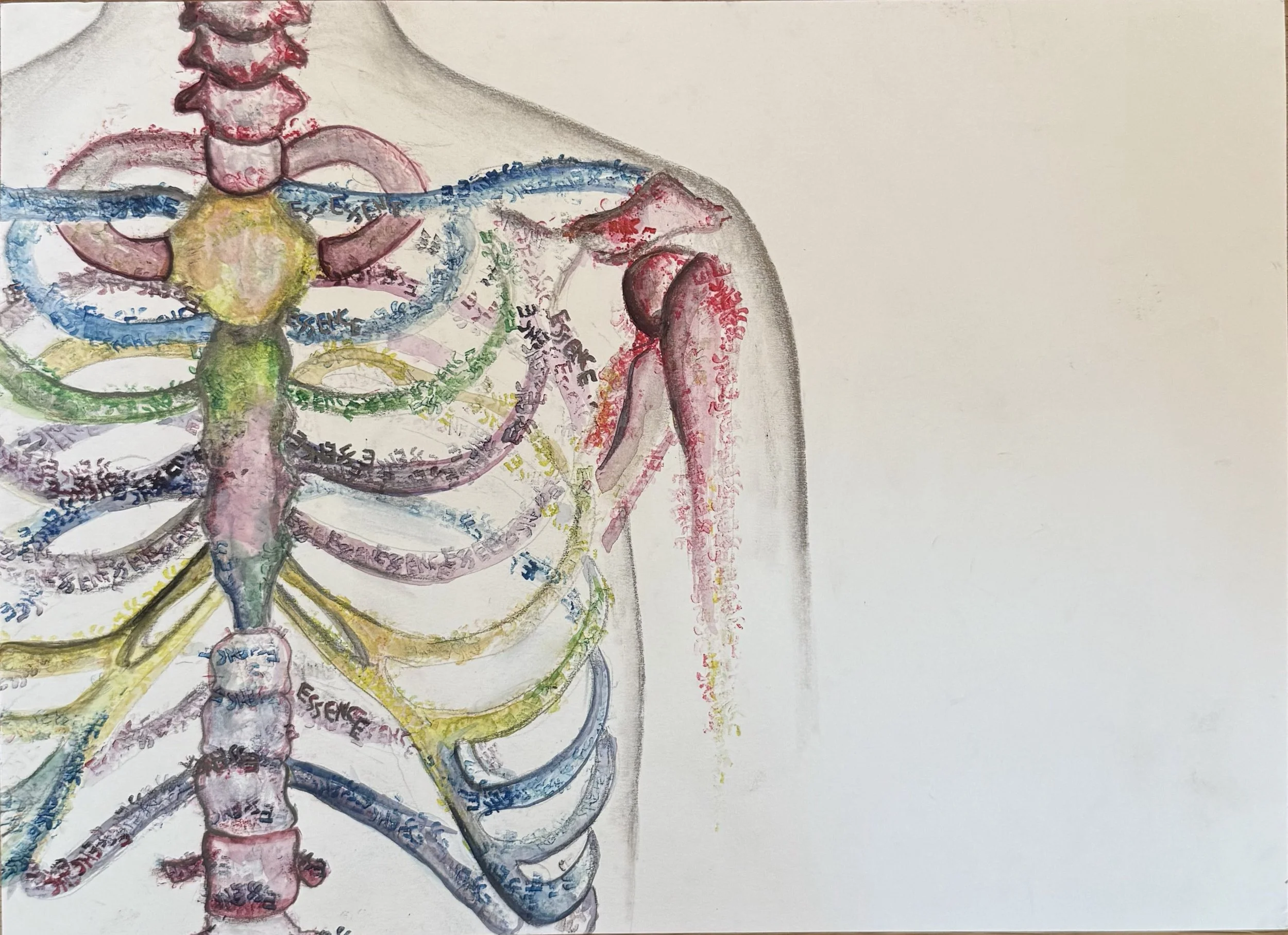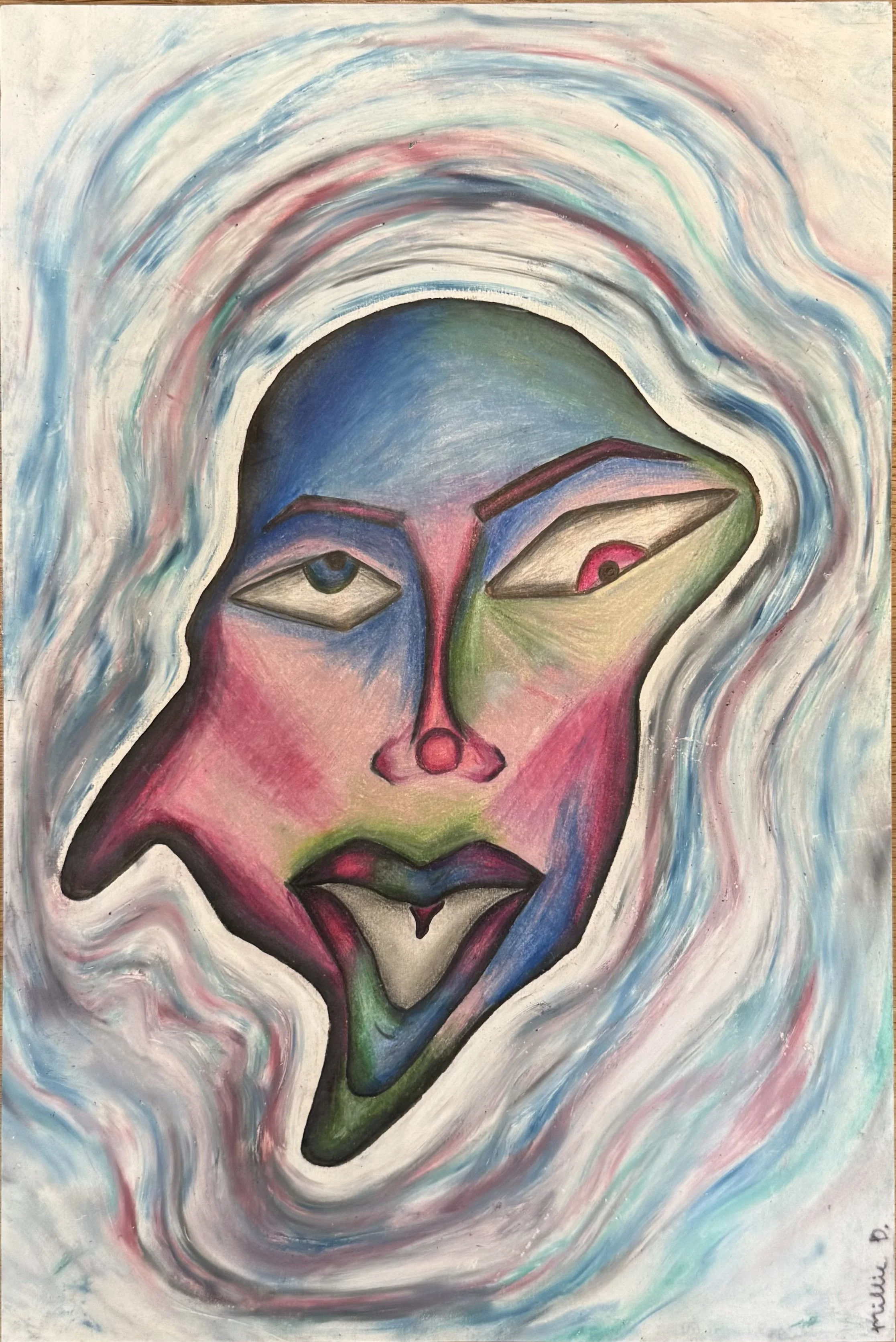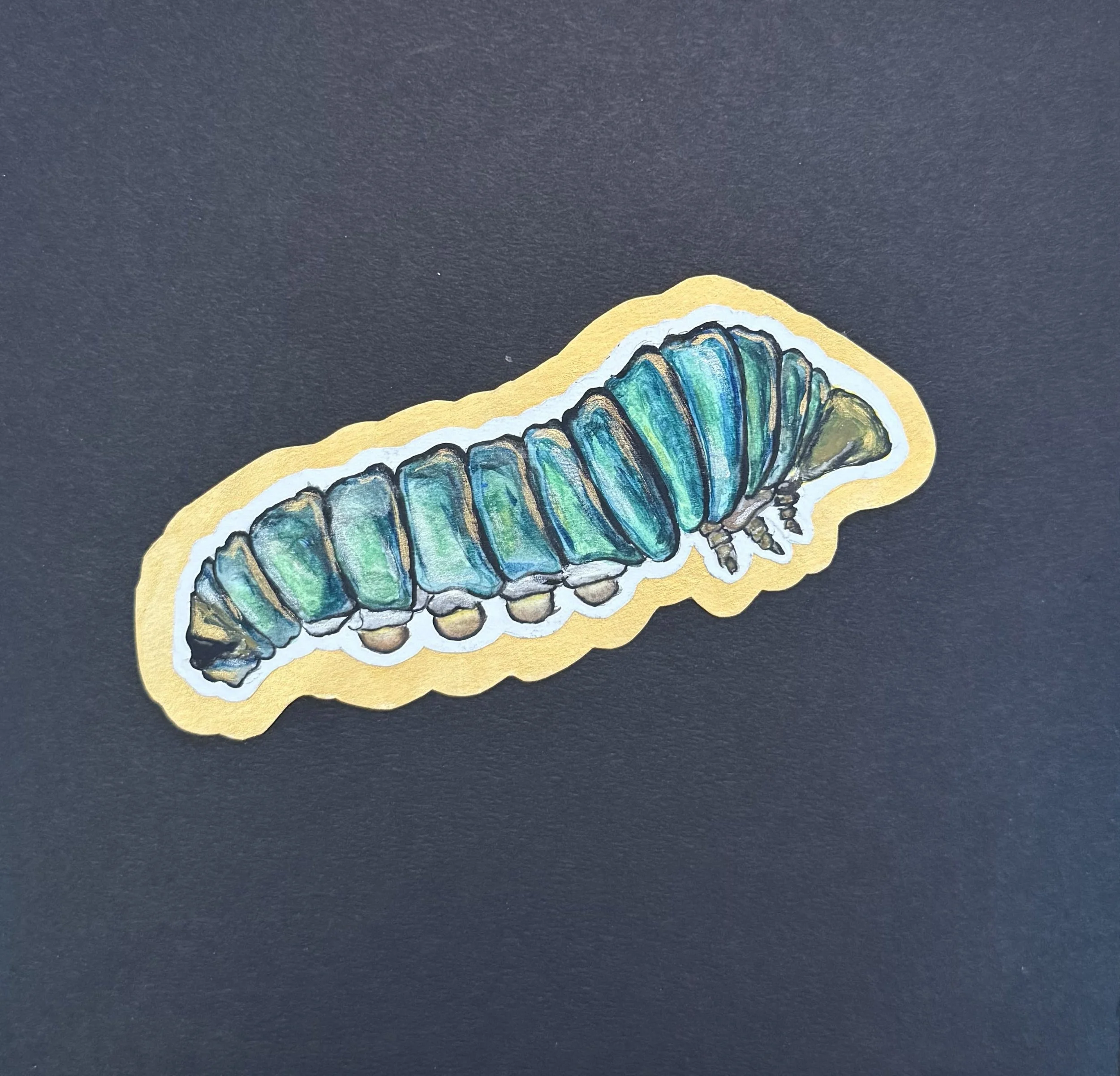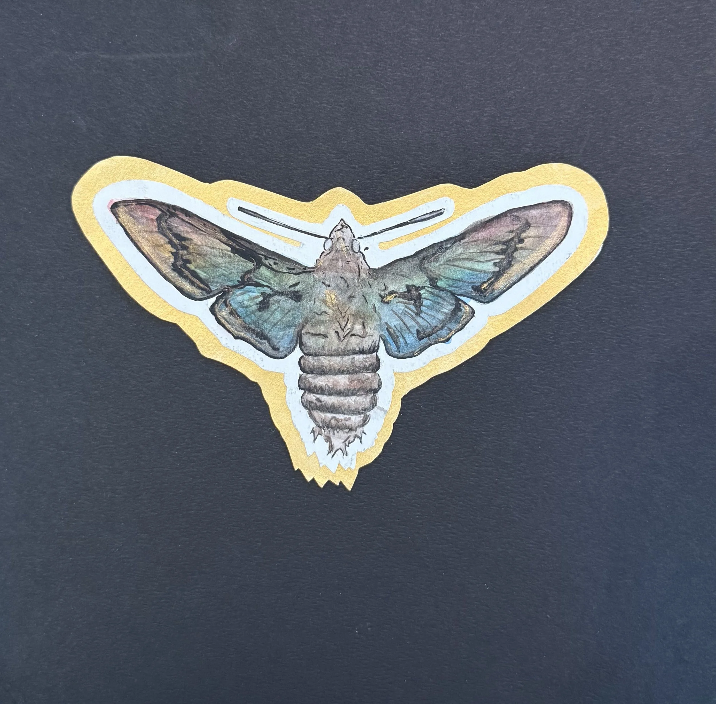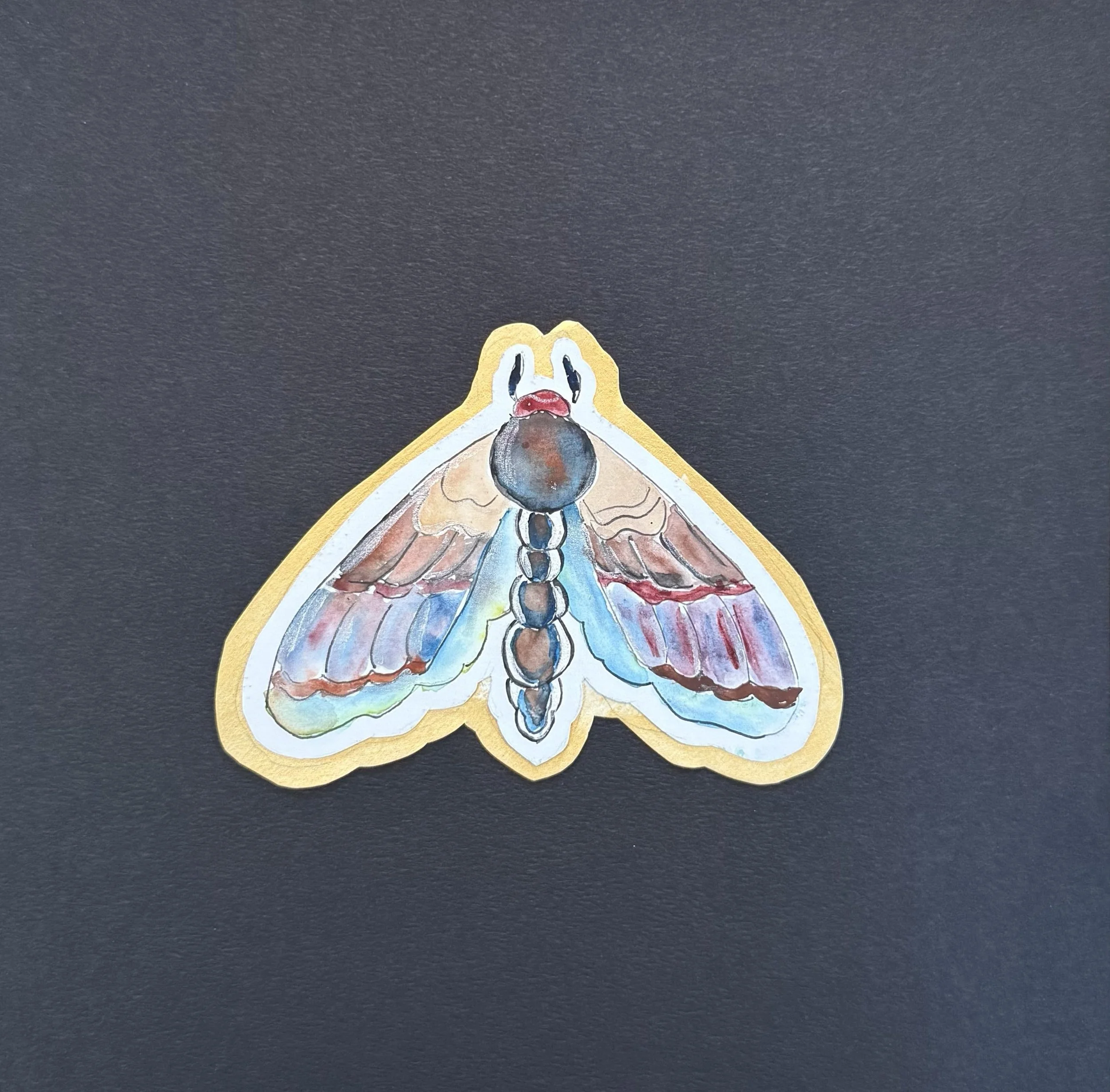My artwork focuses on nature and how it connects to the way we see and feel things. I like working with organic shapes and details, like wings or leaves, because they show beauty in things people don’t always notice. I started with realistic pieces like self-portraits and watercolors of animals and landscapes, which helped me build my skills. Over time, I began to experiment more with color, texture, and materials. My insect series was an important step in that process, because it taught me to appreciate small, everyday things in a new way. My large mixed-media moth piece was a fun way to combine acrylic, clay, and collage while showing how my style has grown. It also has personal meaning, reminding me how my art continues to change as I keep exploring and learning. Each piece I make helps me see the world in a new way, which is shown through the ways my art is always changing, along with my skill set progressing.